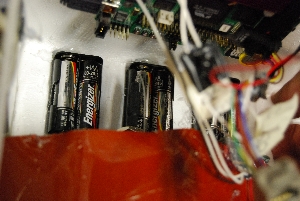 | Extra power for the camera Our camera was a 'craigslst-deluxe' cannon point & shoot. It came with a broken battery bay, and using three external 2xAA battery holsters, we aimed for having an extended runtime. The camera ran stock from 2X AA cells (3v). Why the extra juice? Alkaline cells impedance grows signicantly at low temperatures, and we wanted to make sure the camera could counting snapping photos at altitude. |