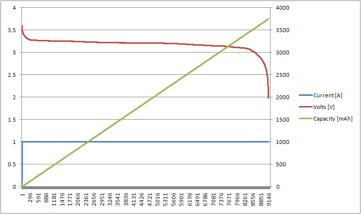 | [Aged] Lithium Iron Phosphate 4 AH cell, [1A discharge] 2V cutoff threshold |